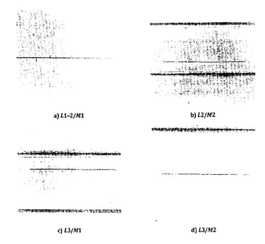 Ví dụ bằng hình ảnh của xếp hạng khác nhau đối với độ dài của sợi dài nhất L và chiều dài của các sợi thường gặp nhất M