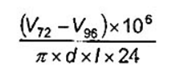 Trong trường hợp các phép đo tiếp theo vẫn được thực hiện sau thời gian dài hơn 96 h, thay thế V72 và V96 trong công thức trên bằng các phép đo thể tích áp chót và cuối cùng tương ứng.
