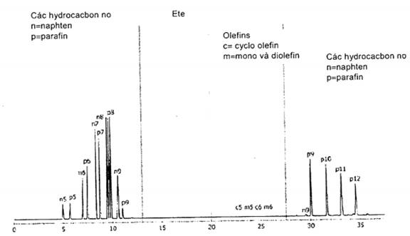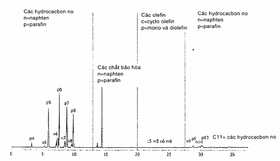 3.2.1.1 Giải thích - Hydro hóa được thực hiện khi các olefin trong mẫu tiếp xúc với platin ở nhiệt độ 180 °C với có mặt của hydro. Các olefin được chuyển hóa thành các hợp chất bão hòa hydro có cùng số cacbon và cùng cấu trúc. Các monoolefin và diolefin chuyển hóa thành các parafin trong khi các cycloolefin và cyclodien chuyển hóa thành các cycloparafin.