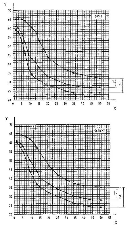 | 60Si8 | 860 | dầu | 450 | 1 300 | 1 450 đến 1 750 | 6 | 25 | 13 | Cách kích thước lớn nhất như đã cho trong Bảng 5 |