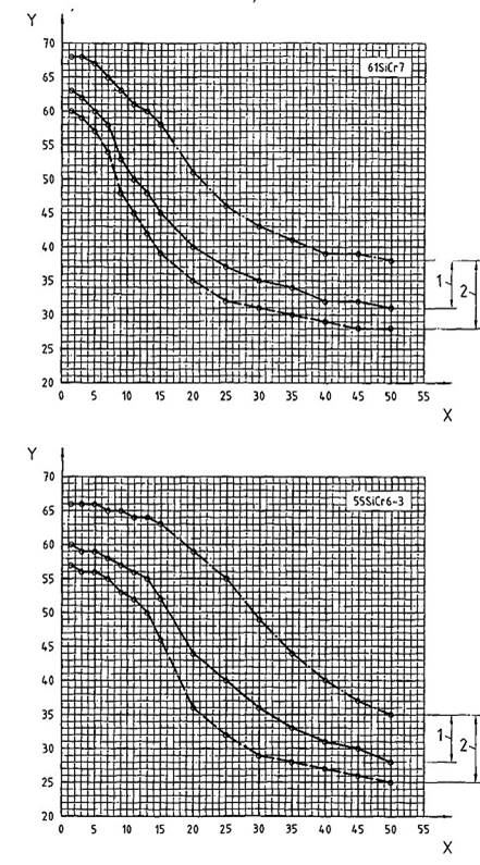 | 55SiCr6-3 | 860 | dầu | 450 | 1 300 | 1 450 đến 1 750 | 6 | 25 | 8 | Cách kích thước lớn nhất như đã cho trong Bảng 5 |