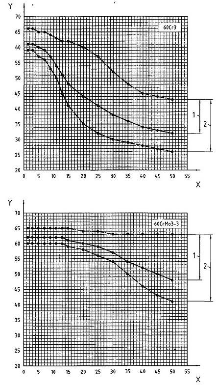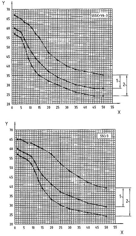 | 55Cr3 | 840 | dầu | 400 | 1 250 | 1 400 đến 1 700 | 3 | 20 | 5 | Cách kích thước lớn nhất như đã cho trong Bảng 5 |