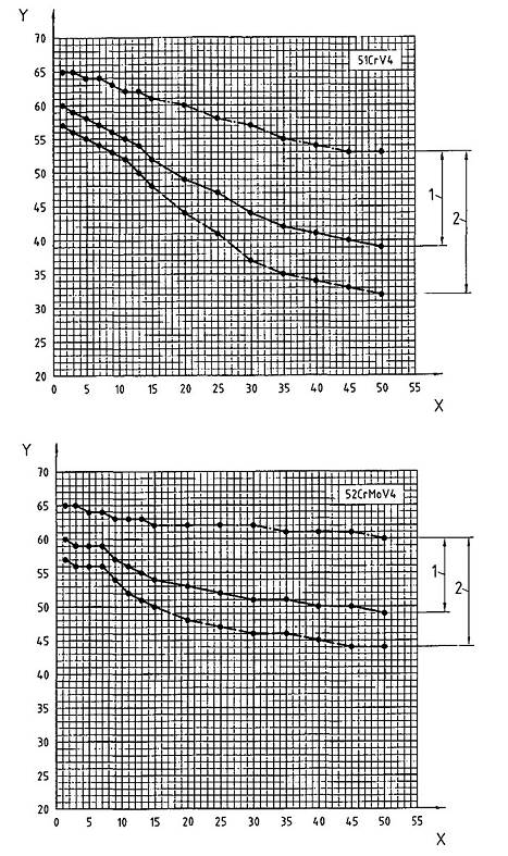 | 51CrV4 | 850 | dầu | 450 | 1 200 | 1 350 đến 1 650 | 6 | 30 | 8 | Cách kích thước lớn nhất như đã cho trong Bảng 5 |