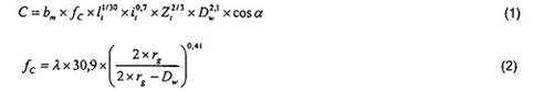 Tải trọng động danh định cơ bản, C, tìm được bằng sử dụng các công thức (1) và (2):