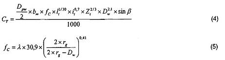 Tải trọng động danh định cơ bản, C, tìm được bằng sử dụng các công thức (7) và (8):