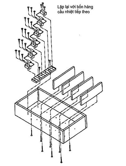 Sử dụng sợi dây đồng 3,3 mm2 để nối giữa các hàng của cầu nhiệt và trong và ngoài hộp qua lỗ trên nắp.