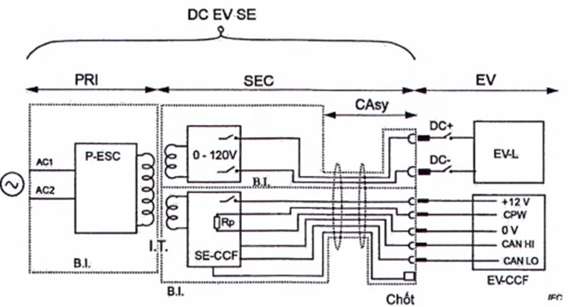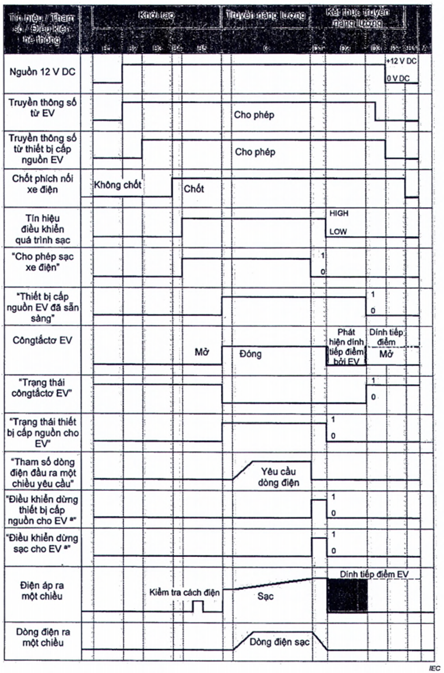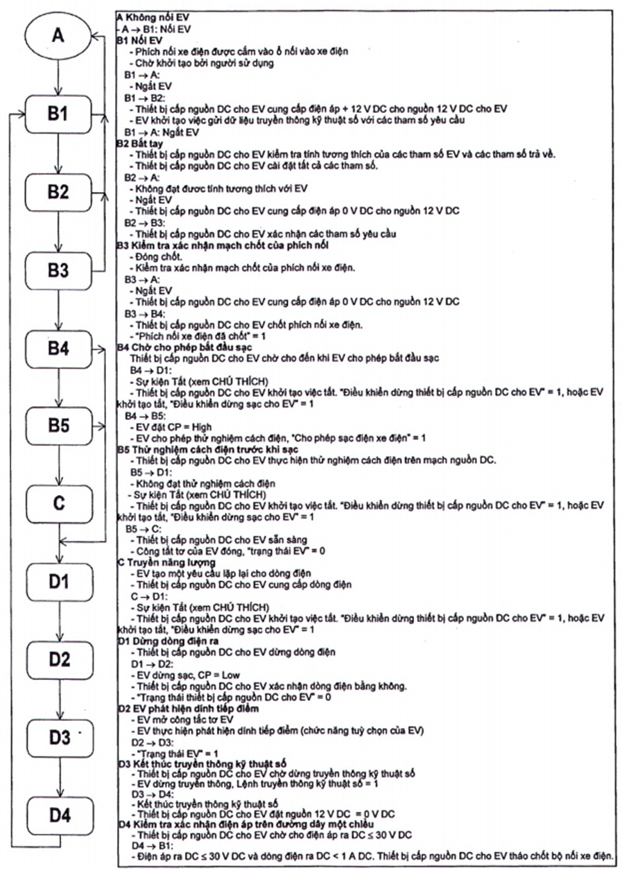 • quy định kỹ thuật của kết nối giữa EV và thiết bị cấp điện một chiều cho EV;