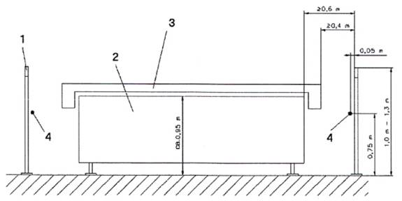 Trạm làm việc là một đường cách cạnh gần nhất của máy 1 m - vị trí của các micrô cách nhau 1 m và cao 1,55 m so với mặt sàn.