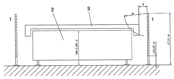 CHÚ THÍCH 1: R lớn hơn hoặc bằng 620 mm được quy định thay vì 900 mm (xem Bảng 1 của EN 294:1992), vì nguy cơ cánh tay bị cuốn vào chỉ tồn tại nếu toàn bộ lòng bàn tay được đặt trên bàn cắt.