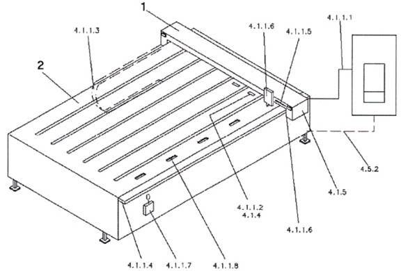 CHÚ THÍCH: Chỉ sử dụng cho máy cắt kính phẳng theo 5.3, nơi có yêu cầu tiếp cận. Các thanh đẩy chỉ cần thiết nếu có nguy cơ cánh tay bị kẹp dập hoặc cuốn vào (xem 4.1.1.2 và 4.1.4): khoảng cách giữa cầu cắt hoặc trục truyền động và bàn cắt có kinh nhỏ hơn 120 mm.