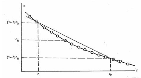 Trong một số trường hợp, khi tổ máy có đặc tính giảm tốc đều đặn, độ chính xác đủ có thể đạt được bằng cách đo thời gian giảm tốc giữa hai tốc độ có cùng sự khác nhau so với tốc độ danh định: