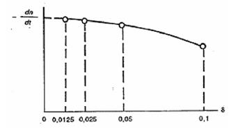 Giá trị độ giảm tốc tính toán được vẽ theo giá trị trung bình của tốc độ quay. Giá trị độ giảm tốc tại tốc độ quay danh định được xác định từ đường cong.