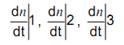 là các giá trị của đạo hàm tốc độ theo thời gian tương ứng trong thử nghiệm thứ nhất, thứ hai và thứ ba.