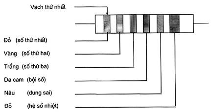 3.4.3. Ví dụ về ghi mã màu dùng cho giá trị điện trở có ba số có nghĩa và hệ số nhiệt