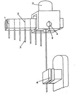| 1. Dụng cụ tháo lắp 2. Nắp tự lựa 3. Khớp trượt | 4. Thanh chặn trên 5. Cặp thanh chặn bằng thép 6. Thanh chặn dưới | 7. Sợi thép |