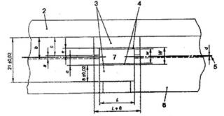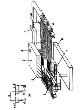 | 1. Tấm kim loại gia cường (chiều dày t) 2. Máng định hình/thanh chặn 3. Nắp | 4. Chốt định vị 5. Khung căng sợi 6. Dụng cụ tháo lắp | 7. Cạnh bên dưới |