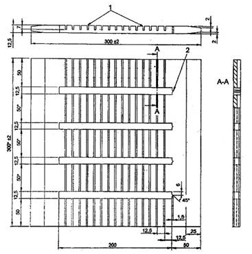Một loại khuôn phù hợp để tạo ra mẫu được gia cường mành đan sợi thép được chỉ ra trong Hình 1. Khuôn này tạo ra mẫu thử có chiều dài 310 mm chứa 21 sợi, có thể chấp nhận các khuôn tương tự có số lượng sợi lớn hơn 9. Kích thước của khuôn x sẽ phụ thuộc vào độ dài được bao bọc của mẫu thử theo yêu cầu (kích thước khuôn phù hợp với đường kính của sợi kim loại được sử dụng, xem 6.2). Khuôn phải có các cặp chèn hoặc các thanh chặn để có được chiều dài được bao bọc khác nhau của sợi kim loại. Kích thước y phải đủ lớn để có thể bao gồm cả phần cao su dư trong lúc ép khuôn (xem 6.3.1).