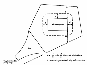 Khoảng cách giữa một điểm kiểm tra và bề mặt của mẫu cần được bố trí để lớn hơn một nửa bước sóng của tần số thấp nhất quan tâm hoặc một nửa khoảng cách từ mẫu đến các tường của phòng, chọn giá trị nào thấp hơn. Nếu cần định vị một micro gần hơn một nửa bước sóng, cần thận trọng trong đánh giá kết quả để tính đến ảnh hưởng của phản xạ lên mẫu.