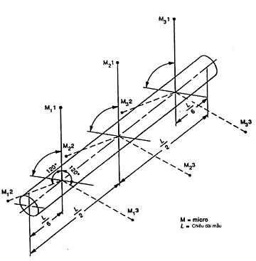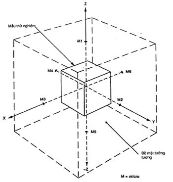 Hình 4 minh họa trường hợp tổng quát để bố trí micro xung quanh một mẫu. Hình 5 cho thấy vị trí điển hình của điểm kiểm tra trên một bề mặt tưởng tượng xung quanh mẫu. Hình 6 cho thấy vị trí điển hình của micro xung quanh một mẫu hình trụ nhỏ. Trong mọi trường hợp, các vị trí micro cần đáp ứng đầy đủ các yêu cầu của thử nghiệm.
