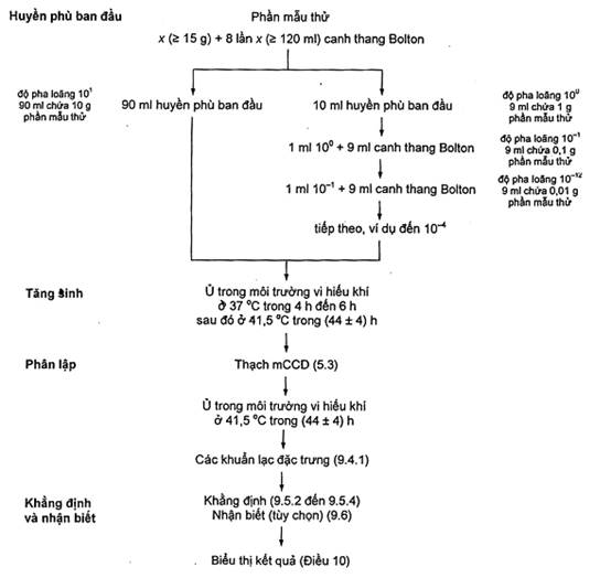 Phương pháp bán định lượng Campylobacter spp. Yêu cầu các bước từ 4.2 đến 4.4 (xem Hình A.1).