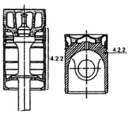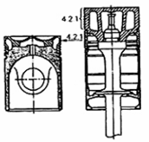 | 4.2.2 | Váy pit tông (phần đáy pit tông) | Phần dưới của pit tông bảo đảm dẫn hướng cho pit tông. Nó có thể có hoặc không có rãnh vòng găng. Trong trường hợp động cơ hai kỳ, thân pit tông còn dùng để đóng mở cửa nạp, thải. |