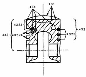 | 4.2.1 | Đầu pit tông (phần trên pit tông) | Phần của pit tông mà trên đó áp suất khí trong xy lanh làm việc, và tại đó tất cả hoặc một số vòng găng được bố trí, bao gồm đỉnh pit tông và đai vòng găng. |
