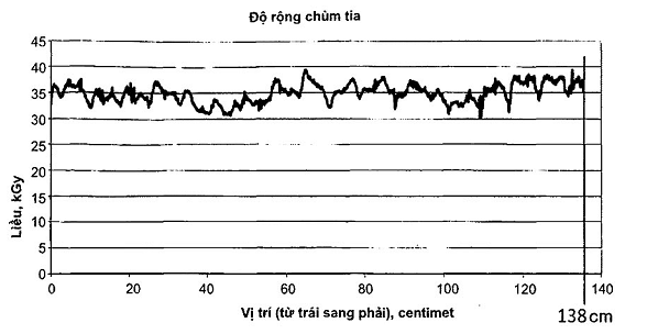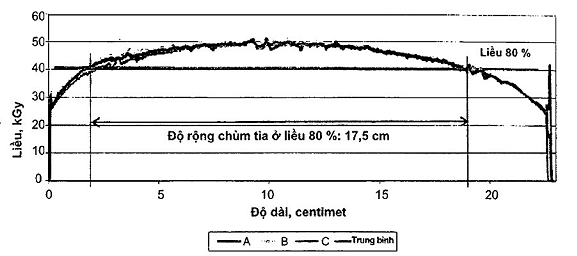 Hình A1.3 - Ví dụ về phép đo độ rộng tại thiết bị máy gia tốc điện tử năng lượng thấp dùng cho mục đích xử lý