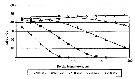 Sự thay đổi liều hấp thụ theo độ sâu tính từ bề mặt tới của vật liệu được chiếu xạ đối với bức xạ xác định.