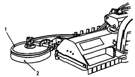 Bộ phận cắt quay có các trục thẳng đứng được trang bị cần xoay cho phép cắt cỏ trong phạm vi giữa hai vật cản liên tiếp (ví dụ, cây, cột trụ, vv…). Xem hình 1.