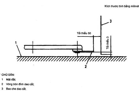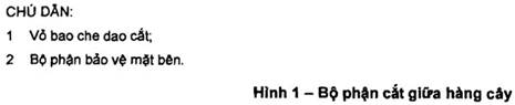 Bộ phận cắt giữa hàng cây phải có bao che kín bao quanh toàn bộ các dao cắt để đảm bảo an toàn, có khoảng cách tối thiểu so với quỹ đạo quay của các dao cắt là 50 mm và kéo dài theo phương thẳng đứng thấp hơn mặt phẳng của đường tròn đỉnh dao cắt ít nhất là 3 mm (xem Hình 2).