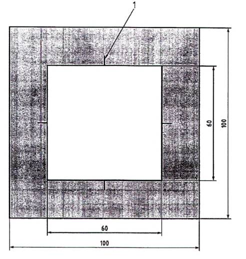 5.1.3 Dụng cụ giữ mẫu thử, gồm một tấm đế 100 mm ×100 mm (xem Hình 2) và một tấm đậy 100 mm ×100 mm có một lỗ mở 60 mm ×60 mm ở tâm (xem Hình 3).