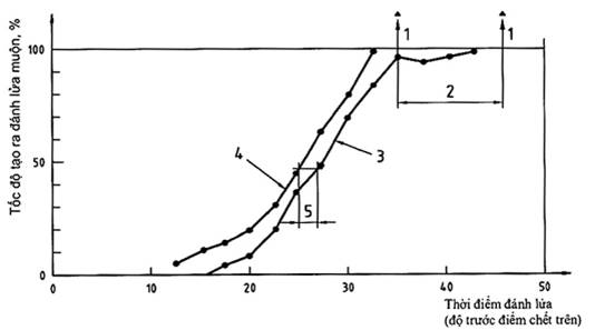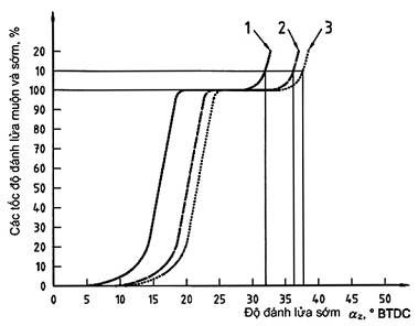 Hình E.6 - Sự thay đổi của tỷ lệ tạo ra đánh lửa muộn do sự thay đổi đặc tính của bugi