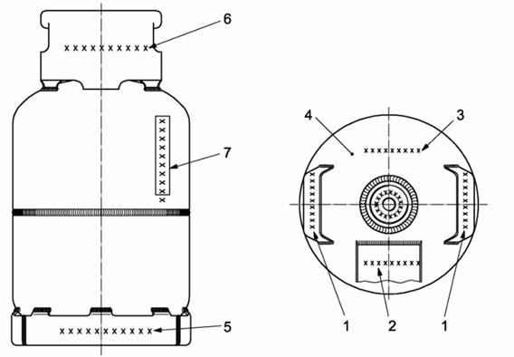 Chai chứa LPG bằng kim loại – Ví dụ về các vị trí ghi nhãn