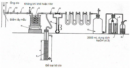 Hình 2 – Sơ đồ thiết bị để xác định nước trong clo