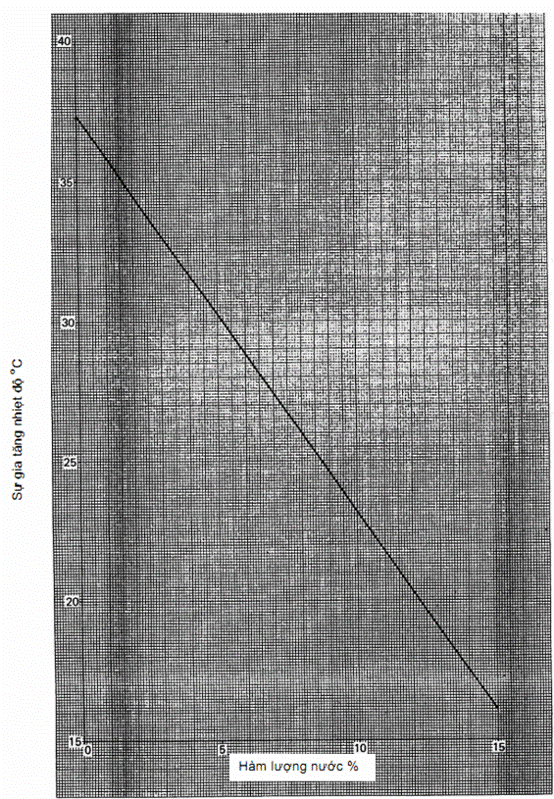 Hình A.1 – Đường chuẩn hàm lượng nước của magie perclorat là hàm số của sự gia tăng nhiệt độ do hòa tan