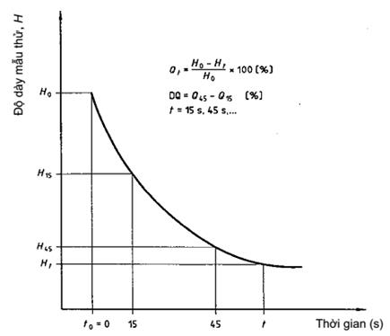 Htlà độ dày mẫu thử tại thời gian t (t = 15 s, 45 s hoặc lâu hơn).