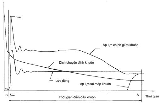 b) Kết thúc thời gian điền đầy khuôn tElà thời gian mà tại đó áp lực ở mép khuôn đạt đến 95 % giá trị (ổn định) cuối của nó.