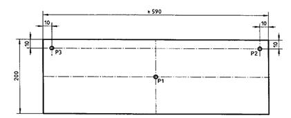 5.2.2. Khuôn sắc cạnh được gia nhiệt (xem Hình 5 và 6), có chiều rộng 200 mm và chiều dài tối thiểu 590 mm, được gắn với máy ép. Khuôn này phải có ba cảm biến, một cảm biến ở giữa và hai cảm biến ở hai đầu phần lõm của khuôn. Các cảm biến này phải được đặt bằng với mặt phẳng phía trong của khuôn.