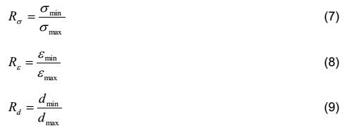 Giá trị nhỏ nhất đạt được của ứng suất, biểu thị bằng megapascal hoặc biến dạng, biểu thị bằng phần trăm hoặc dịch chuyển, biểu thị bằng milimét.