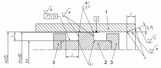 6.2.1. Các ví dụ minh họa các kích thước của rãnh lắp vòng làm kín trên cần pít tông được cho trên Hình 3 và Hình 4.
