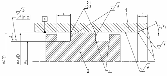 6.1.1. Các ví dụ minh họa các kích thước của rãnh lắp vòng làm kín trên pít tông được cho trên Hình 1 và Hình 2.