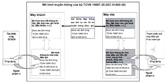 Bộ TCVN 10687-25 (IEC 61400-25) được xây dựng dựa trên mô hình truyền thông máy khách-máy chủ. Để đảm bảo tính linh hoạt và mở rộng trong triển khai, tiêu chuẩn chia thành ba lĩnh vực được mô hình hóa riêng biệt: