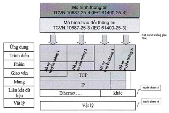 - Ánh xạ vào một hồ sơ truyền thông, cung cấp một ngăn xếp giao thức để truyền các giá trị trao đổi từ thông tin đã được mô hình hóa trong TCVN 10687-25-4 (IEC 61400-25-4).