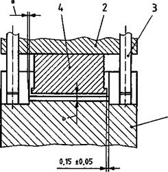 CHÚ THÍCH 1 Tấm thử có độ dày nhất định có thể tạo được bằng cách đặt các tấm cữ có kích thước phù hợp giữa các tấm khuôn tại các góc của khuôn.
