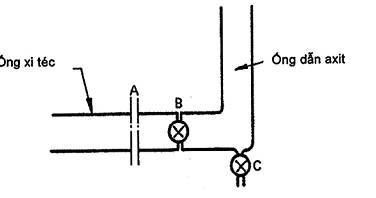 Nói chung, lấy ba mẫu sơ cấp, bắt đầu khuấy từ giữa dòng, kết thúc khuấy tại điểm đầu của ống dẫn. Để thực hiện được việc này, tiến hành như sau: Nối ống xi-téc với van dẫn tại gờ A. Khóa van thoát C và mở van dẫn B. Bắt đầu bơm vào xi-téc. Khi mẫu đạt yêu cầu, tắt công tắc bơm vào xi-téc, và nhanh tay khóa van B. Sau đó mở van C (van này thông thường được sử dụng để xả sản phẩm theo đường dẫn) và lấy mẫu axit. Xem Hình 1.
