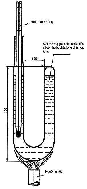 4.7 Bình gia nhiệt, được trình bày trong Hình 4, môi trường gia nhiệt chứa dầu silicon hoặc chất lỏng phù hợp khác, và được trang bị nhiệt kế phòng thử nghiệm phù hợp.