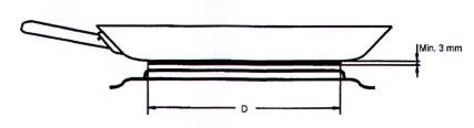 Đường kính D của phần mặt phẳng ở đáy không được nhỏ hơn đường kính của tấm nóng hoặc vùng nấu và không được lớn hơn đường kính này quá 20 mm.