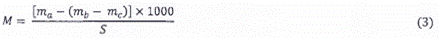 Khi thực hiện qui trình này, xác định khối lượng chính xác của chất mô phỏng được sử dụng bằng chênh lệch khối lượng (Mm). Cho tiếp xúc ba phần chất mô phỏng trắng (chất mô phỏng không có mẫu thử) đồng thời với mẫu thử đã tiếp xúc để được các mẫu trắng mô phỏng.
