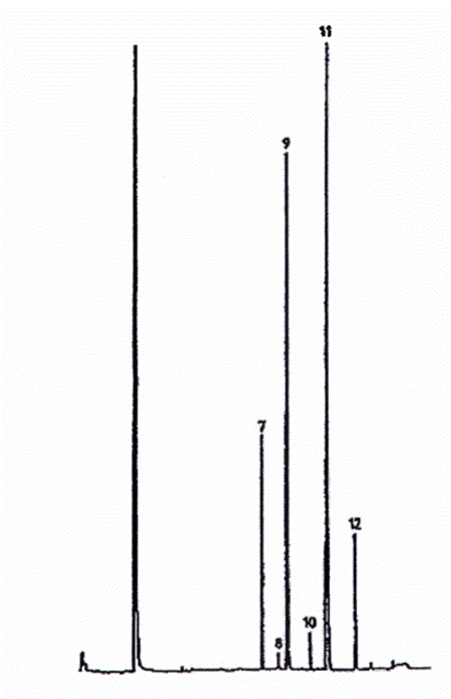 | 7 = C16:0 | 8 = C16:1 | 9 = C17:0 | 10 = C18:0 | 11 = C18:1 | 12 = C18:2 |