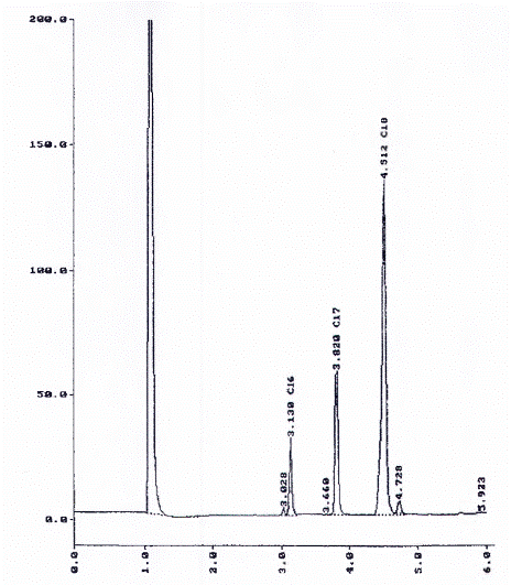 Mẫu thử thường giữ lại dầu ôliu đã được hấp thụ mà lượng dầu ôliu này sẽ được chiết và xác định định lượng bằng phương pháp sắc ký khí sau khi chuyển thành các metyl este. Sự metyl hóa được tiến hành bởi phản ứng của phức Bo trifluorua/metanol với các axit béo được tạo thành bằng cách thủy phân dầu với kali hydroxit. Chất chuẩn nội, triheptadecanoin, được thêm vào trước khi chiết dầu ôliu bị mẫu thử hấp thụ. Điều này bảo đảm rằng, bất kỳ hoạt chất hoặc thành phần chiết của chất dẻo phản ứng với chất chuẩn nội, thì cũng phản ứng với dầu ôliu chiết được. Chất chuẩn nội cũng tham gia vào các phản ứng thủy phân và metyl hóa, để bù cho sự thiếu hụt có thể xảy ra trong quá trình thủy phân và metyl hóa.